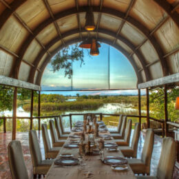 Nestled on a lush palm island in the heart of the northern Okavango Delta, in a private concession, Shinde is an intimate, classic camp located on the edge of Shinde Lagoon. With an elegance and charm, the eight well positioned classic safari tents are the perfect retreat between the early morning or late afternoon game activities. Each tented room has wide sliding doors opening on to the front deck and the breath-taking views over open floodplains or waterways of the Delta. Shinde Camp’s unique main area comprises a multi-tiered dining room and lounge, set under canvas in the shade of vast ebony and mangosteen trees. A stunning spot for meals shared with fellow safari-goers and the telling of the days animal sightings.With its location in the Okavango Delta, Shinde has the advantage of offering year-round water based and land activities. Motorboats or mokoros provide a chance to experience the absolute tranquility of the area while looking at incredible birds, plants and reptile species of the Okavango Delta. Morning and late afternoon game drives at Shinde are conducted in 4X4 open, specially designed vehicles, while for the more active or adventurous, guided walks are on offer as well as seasonal fishing for enthusiasts.