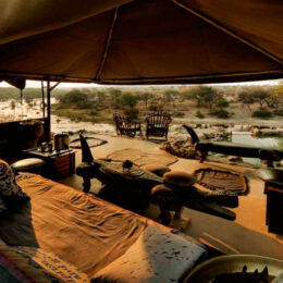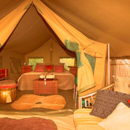 Located midway between the picturesque Okavango Delta and the spectacular Central Kalahari Game Reserve, Meno a Kwena tented camp – meaning “Teeth of the crocodile” – and one of Botswana’s original safari camps, provides a unique African wildlife experience, authentic and traditional. Just 90 minutes by road from Maun, at Meno a Kwena you will discover real attention to detail and service, together with an enormous passion for wildlife. High above the Boteti River on the western boundary of the Makgadikgadi Pans National Park, the nine luxury tented en-suite rooms are wonderfully located overlooking the river below, taking full advantage of the view with animals coming to quench their thirst, and some of the best wildlife action actually happens right in front of the camp. As the only source of permanent water in the area, camp is perfectly positioned to witness Africa’s second largest zebra migration right in front of the camp during the dry season (May to November), and a rich diversity of wildlife can be seen throughout the year. Activities that can be experienced during your stay include open vehicle game drives into the nearby reserves – the Central Kalahari and the Makgadikgadi Pans National Park, where meerkats and desert adapted antelopes are regularly seen, and lion and cheetah can sometimes be spotted. Take a boat cruise on the river, observe the animals from the floating hide at sunset, or enjoy a fascinating walk with the indigenous Bushmen that will give you an extraordinary insight into this ancient culture and the relationship between man and nature.