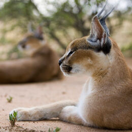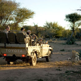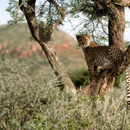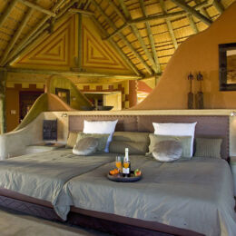 Family owned and operated, the exclusive and luxurious private Okonjima Bush Suite lies nestled in secluded wilderness overlooking a waterhole, with the mountains as a backdrop. A magnificent thatched roof houses two separate en-suite air-conditioned bedrooms, with beds that can be wheeled outside on to the terrace for a night under the stars. The bathrooms have both inside and spectacular outside showers and a beautiful, colonial, style bath with a view of the bush. The living space consists of spacious lounge, dining area and an open, wood-burning fireplace, with a modern, chef-designed kitchenette and uniquely designed swimming pool. These facilities come with a personal butler and chef to attend to your every need. Enjoy your very own exclusive guide and open safari vehicle on the activities which include game drives, cheetah tracking, night drives, Bushman walking trails and observing the wonderful work of the AfriCat Foundation. Close encounters with leopard and cheetah are certainly an unforgettable highlight during a stay at Okonjima.