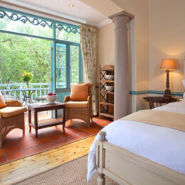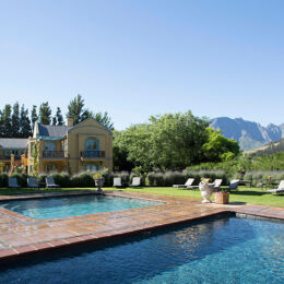 Providing beautiful accommodation and personalised service, the boutique Franschhoek Country House is privately owned and managed. Situated on the outskirts of Franschhoek village, with a complimentary shuttle service available, surrounded by vineyards and mountains, it is a restored manor house and perfumery dating back to 1890. With 14 en-suite rooms and garden cottages, plus 12 Villa Suites, almost all have private balconies or private patio with magnificent views of the surroundings. The opulent and hugely spacious Villa Suites are stylish and luxurious with enormous bathrooms, separate lounge and fireplace. Two swimming pools, beautifully manicured gardens and a Spa complete the facilities. The original converted homestead houses the award-winning Monneaux Restaurant, voted as one of South Africa’s best. Lunches are served on the magnificent fountain terrace whilst dinner is served in the elegant, dining room or enclosed verandah. Attention to detail and friendly personal service completes the experience at this fine country retreat.