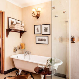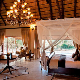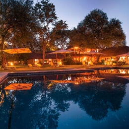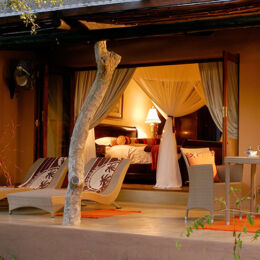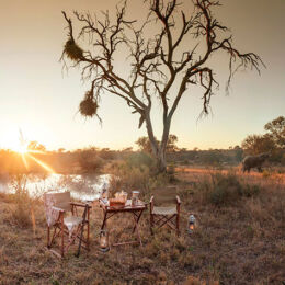 The gracious Kings Camp is situated in the Timbavati Private Nature Reserve adjoining the Kruger National Park. Facing open savanna plains and a waterhole frequented by a wide variety of wildlife during the day or night, Kings Camp Private Game Reserve is a wildlife haven boasting a diversity of animal life including the ‘Big Five’, and is home to the rare white lions. A boutique safari lodge reflecting the charm and romance of an historical past, Kings Camp Private Game Reserve offers welcoming, warm and friendly hospitality. With just nine spacious Colonial suites and two exquisite Honeymoon suites, all are luxuriously equipped with air-conditioning, Victorian ball-and-claw bath, indoor and outdoor double shower and private verandah. The honeymoon suites enjoy the added privacy of their own pools overlooking the bush. A thatched viewing deck overlooking the active waterhole, and the open plan lounge and bar are ideal places to relax in comfort and enjoy the tranquility of the African bush, while the dining room offers stunning views of the bush while enjoying the sumptuous cuisine. A swimming pool, gym and spa complete the facilities. For the ultimate in exclusivity, and ideal for multi-generational family groups or small groups of friends wanting something special, Waterbuck Private Camp, with its own game viewing vehicle and guide, personal butler and chef, boasts a four-bedroomed Private Villa, ideal for special occasions or celebrations in the bush.