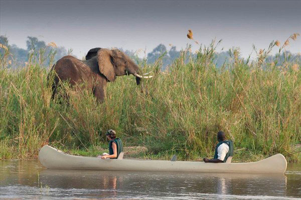 This true colonial style safari lodge, named after famous artist and explorer Thomas Baines, offers a choice of eight air-conditioned en-suite Explorer Suites, each with commanding views of the Zambezi River from a comfortably furnished veranda. Decorated with rich, classical fabrics, natural hardwood timbers and leather, walk-in shower and spacious dressing area, and complimentary mini-bar, the suites take luxury to the limits in the Zambezi Valley. The main open plan lodge features library, lounge, bar and dining areas, swimming pool and an outdoor boma-style fireplace which is lit every evening. A two bedroomed cottage is also available and ideal for families or friends travelling together wanting some extra space or privacy. A wide variety of activities are available to discover different aspects of the African bush, both on land in open 4X4 vehicles and on the water in boats and canoes. Specialised workshops are offered in bird watching, wildlife photography and angling or if you are intrigued by the intimate world of elephants, Baines’ River Camp offers you the ideal venue with professionals who are passionate about the African bush and their area of expertise.