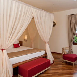 Nestled in a natural cove on the northeast coast of the island of Zanzibar overlooking the Indian Ocean is the contemporary and luxurious award winning Essque Zalu. Featuring a range of suites and villas, discover a perfect tropical retreat. The resort features 40 suites and nine villas. Traditionally thatched with picturesque views either over the lush tropical gardens or the ocean, the luxurious-styled spaces are crafted from local materials and furnished with local artwork. The property offers a choice of three distinctive Zanzibari restaurants, a café, and three well-stocked bars. A swimming pool, water sports, Africology spa and art gallery, featuring paintings, sculptures, glassworks and photographs from the local and regional artistic community, complete the facilities and amenities available to guests. At sunset enjoy African sundowners on the deck of a traditional dhow, with a cruise before dinner.